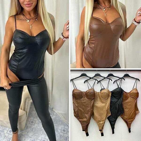 Musta värvi nahkne body (one size, sobib XS-S)